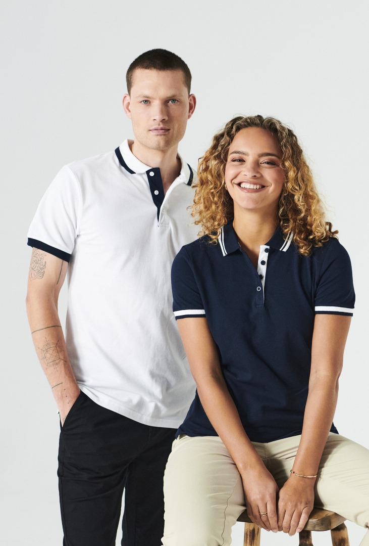 • Moderne polo met contrasterende details in de kraag en bij de mouwen. De polo is hoogwaardig afgewerkt met zijsplitjes, ton sur ton knopen, verstevigde necktape en een gemakkelijk te verwijderen label voor rebranding. Goed te combineren met de Conrad en Amarillo polo’s.