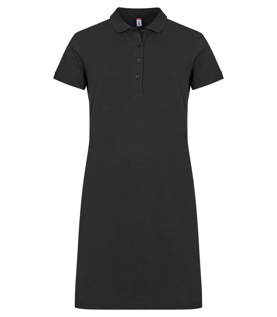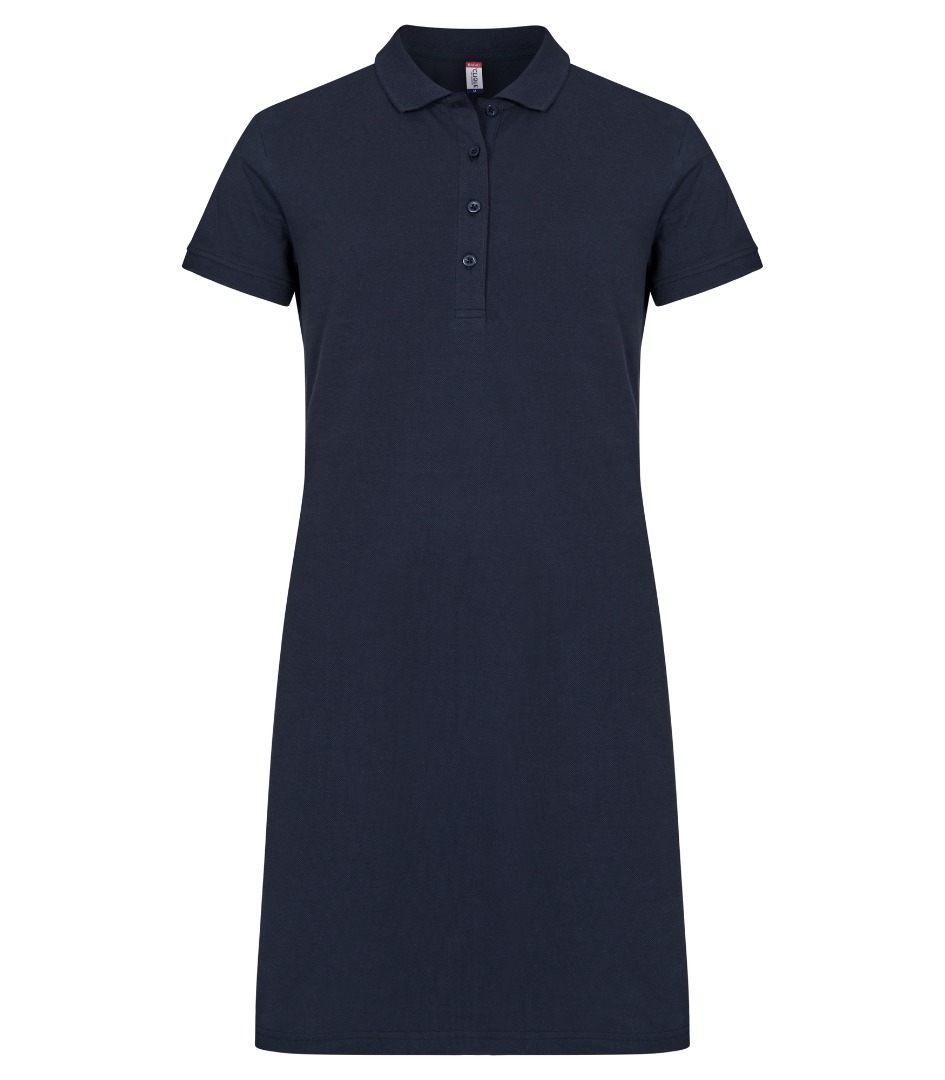 Marietta is een tijdloze polojurk met zijsplitten en vier ton sur ton knopen. Deze jurk is afgewerkt met verstevigde necktape en een gemakkelijk te verwijderen label voor rebranding.